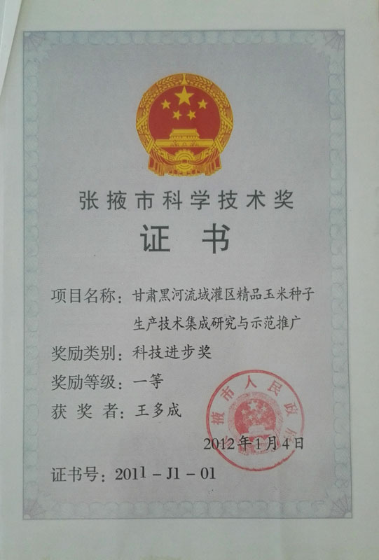 2012年榮獲張掖市科技進步一等獎…